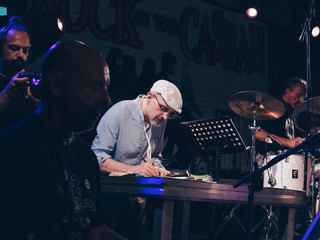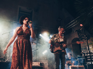 Come un piacere presentare Oli, Giorgia Oliva, talento vero. Il suo omaggio alla Casbah inizia con un brano del grande Stefano Minutolo, e prosegue con i suoi pezzi soul-pop, ad accompagnarla ciò che a poco diventa la Rock in the Casbah Family, un lungo entrare ed uscire dal palco, tutti i Ratamacue, un pezzo di Berben Band, e Sudario Brando a disegnare sul palco in diretta. Tanti i ricordi. La voce di Larry prima, di un Raffaele Arieta, ispirato come non mai, poi. E tante anche le nuove composizioni. Un senso vero di famiglia ed un senso vero di palco amichevole, come se la quarta parete qui non fosse mai stata montata. Tanti i sorrisi. Tanti i tuffi al cuore. Siamo sempre come figurine incollate sul quaderno di questo vuoto immenso, lo dice Larry in Figurine, e lo immaginiamo, ma non ci vestiamo meglio, e ci fermiamo qui. Menzione ancora per le nuove composizioni di Raffaele Arieta. Folgoranti. Testi splendidi, ironia, la musica che di colpo diventa un “indie” come non si ascolta alla radio, sarebbe troppo, si fermerebbero a pensare in troppi, ed allora meglio così. Sappiamo goderne noi.