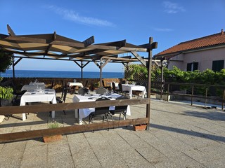Accomodatevi sulla terrazza esclusiva e immergetevi in un'atmosfera suggestiva, cullati dalla brezza marina e dalla vista mozzafiato. Un connubio perfetto di sapori e panorami, per un'esperienza gastronomica davvero unica.