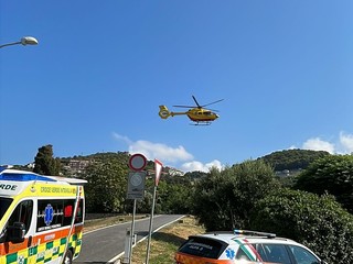 Bordighera, scontro scooter-auto sulla Romana: si alza in volo l'elisoccorso (Foto)
