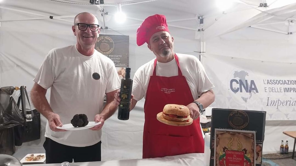Nell’Arti-Villaggio CNA si è, infatti, svolta una simpatica cerimonia a tema "Sapori e profumi del Ponente" tra la Confraternita du Pan Bagnau di Bordighera e il nuovo Tartufo di Seborga. Il priore della confraternita Francesco Franz Verrando e il tartuficoltore Villiam Casali hanno presentato una nuova ricetta del Pan Bagnau e stipulato un gemellaggio tra le due associazioni per collaborare a promuovere le tradizioni e prodotti locali.