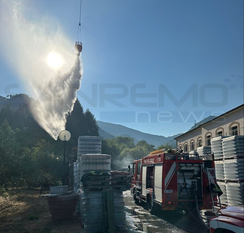 Ceriana: a fuoco alcuni fusti fuori dalla Crespi intervento di Protezione Civile e Pompieri (Foto)