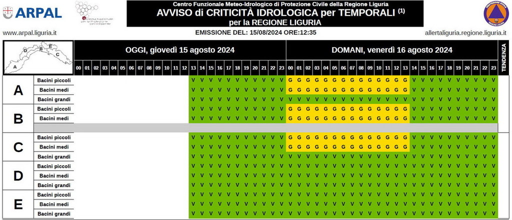 E’ stato diramato dall’Arpal ligure lo stato di allerta giallo per temporali. Riguarderà soprattutto la nostra provincia, quella di Savona e insieme alla zona del genovesato e parte dello spezzino.