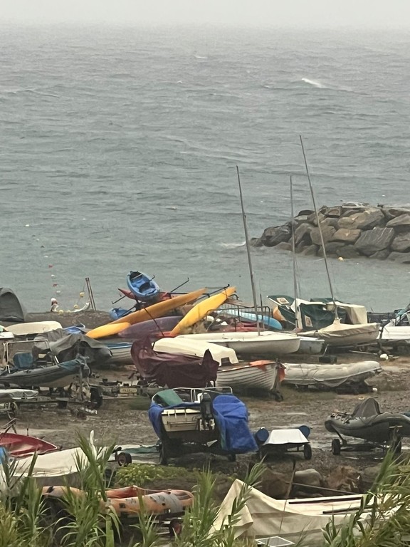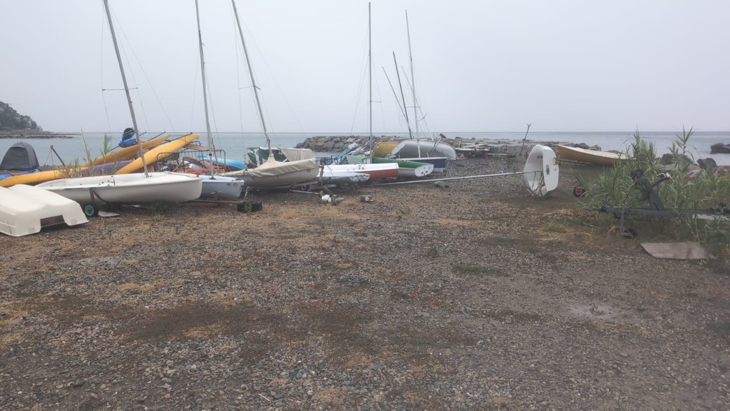 Maltempo ad Ospedaletti, barche rovesciate al Centro Velico: disagi anche in zona Byblos (Foto)