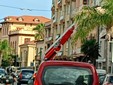 Tendoni e teli strappati, tegole dei tetti volate via, tombini intasati, alberi e cornicioni caduti e mancanza di corrente in alcune parti della città