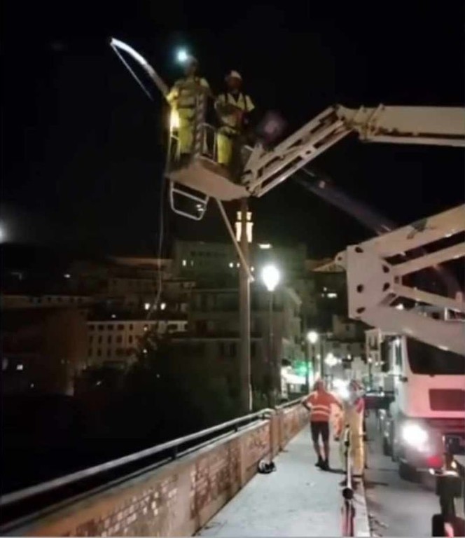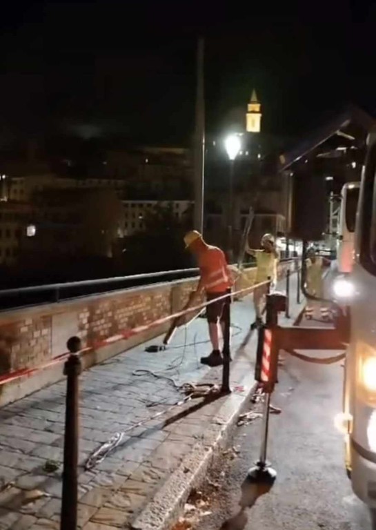 "Sto seguendo direttamente l'intervento di rimozione dei pali del filobus che hanno causato danni sul ponte Doria. In seguito alla tempesta abbiamo dovuto restringere la carreggiata e deviare il transito pedonale" - dice il primo cittadino.