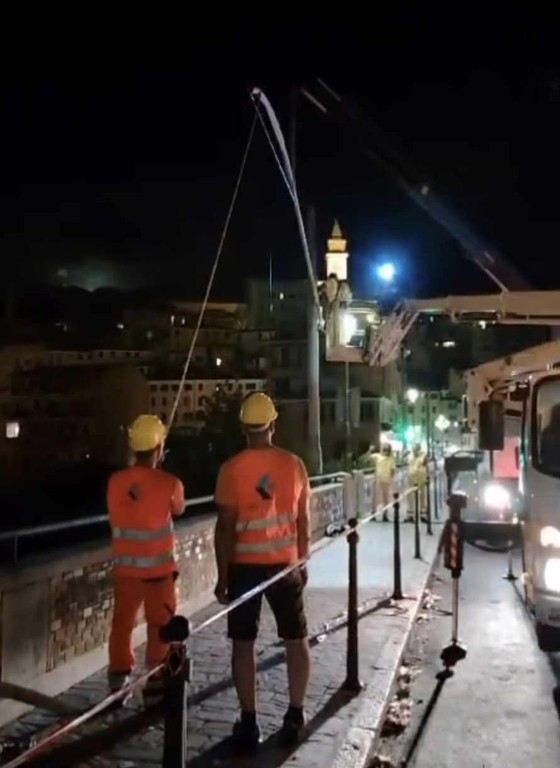 Rimossi i pali e i tralicci del filobus sul ponte Doria a Ventimiglia. Una decisione presa dal sindaco Flavio Di Muro in seguito alla forte ondata di maltempo che ha colpito la città ieri mattina creando disagi.