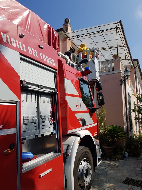 Intervento della protezione civile di Vallecrosia e dei vigili del fuoco per togliere un grosso nido di vespe velutine da un tetto di una casa. E' successo in mattinata in via Orazio Raimondo nella città della famiglia.