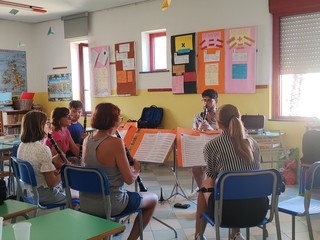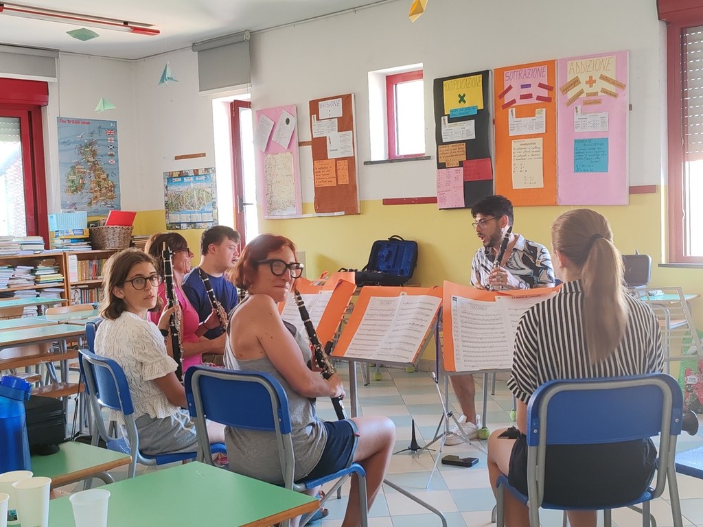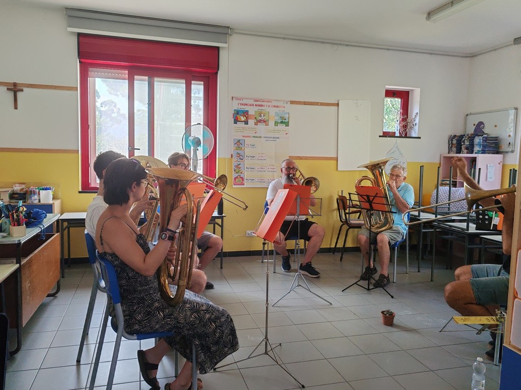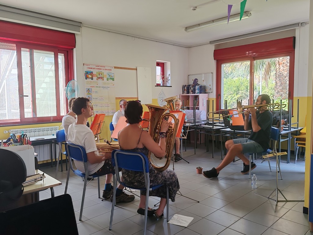 Procede bene il campus inclusivo ospitato nella scuola primaria di via Pasteur che ha come obiettivi la formazione musicale e la socializzazione in armonia del gruppo. "Il campus prevede la suddivisione in due livelli diversi così che tutti possano sentirsi a proprio agio e trovare divertimento a suonare insieme" - fa sapere Luca Anghinoni della Banda Musicale Borghetto San Nicolò Città di Bordighera - "I due gruppi sono i 'Pignurin' (il livello base) e le 'Anciue' (il livello più avanzato). I partecipanti sono seguiti, come ogni anno, da docenti esperti che si occupano delle varie sezioni: Yasmin Khreiwesh di flauto traverso, Claudia Bellamino di oboe, Anthony Marotta di clarinetti, Enea Tonetti di sassofoni, Simone Bottino di trombe, Stefano Cicerone di ottoni e Isabella Rosini di percussioni. Sette grandi professionisti a disposizione per curare al meglio lo studio in piccolo gruppo e gli approfondimenti tecnici. Stiamo facendo un grande lavoro di preparazione didattica soprattutto sul gruppo, sulla motivazione dei ragazzi e sulla ricerca del repertorio. Il maestro José Alcacer Dura, che ha molta esperienza e ha viaggiato in tutto il mondo, ha scelto i pezzi per costruire la banda formata da diversi ragazzi della Banda Musicale Borghetto San Nicolò Città di Bordighera ma vi sono anche persone che provengono da fuori, come dal Piemonte o dalla Lombardia. In quattro giorni si sta insieme, si fa musica insieme, si mangia insieme grazie ai ragazzi della Spes che preparano e ci portano il pranzo, e si fa gruppo cercando di imparare ad ascoltare e a emozionarci, in particolare a imparare ad ascoltare con il cuore".