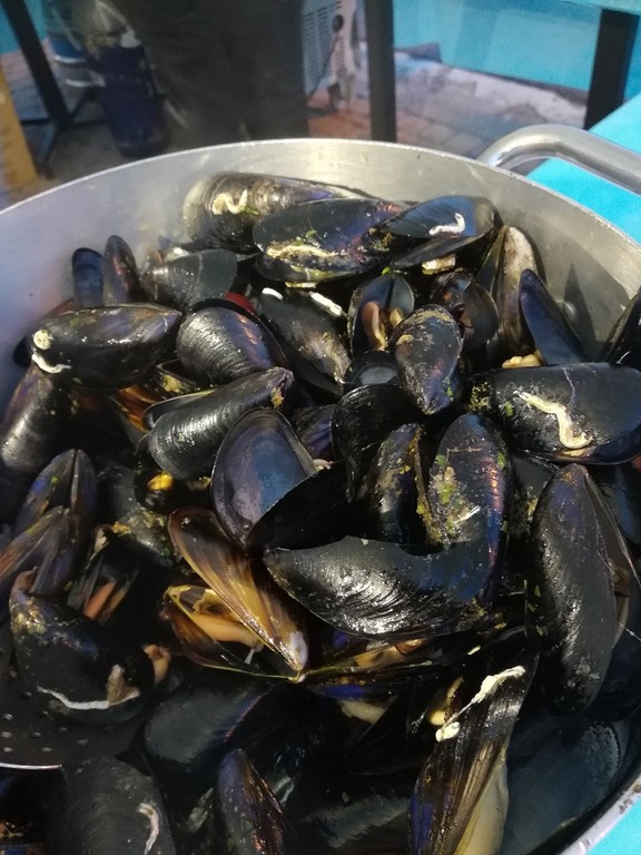 Ristorante delle Palme (Cozze alla Marinara con Aglio di Vessalico, Calamari & Chips, Moscardini in guazzetto con Aglio di Vessalico, Pennette con guanciale, pomodorini basilico e cacio, Dolci tipici della casa)