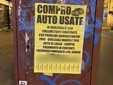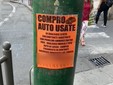 I cartelli sono dei semplici fogli colorati dove un certo ‘Michele’ si dichiara disponibile ad acquistare auto in qualsiasi stato e di qualsiasi marca con pagamento in contanti