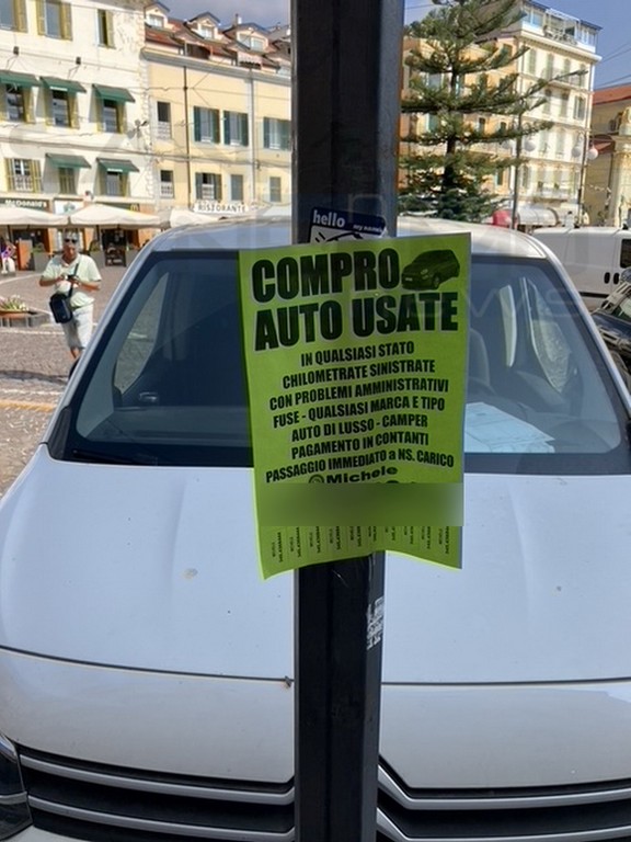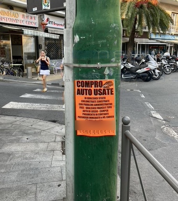 Sanremo: affissione selvaggia in centro, tornano i cartelli dei 'compra auto' e le proteste dei cittadini (Foto)