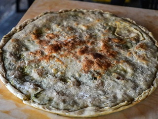 "Il Rezegnun, protagonista della serata, è una torta verde tipica della cucina andagnina, preparata con ingredienti semplici e genuini come bietole, uova e ricotta, e arricchita da un delizioso strato di lardo e salsiccia. Questo piatto, simbolo della tradizione, lo scorso anno ha ottenuto la prima DE.CO. (Denominazione Comunale) del Comune di Molini di Triora.