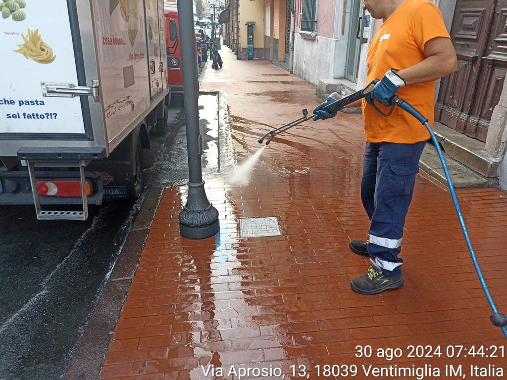 Lavati, igienizzati e sanificati i marciapiedi di Ventimiglia. Continuano, perciò, gli interventi per rendere più pulita e decorosa la città, come previsto dall'indirizzo politico dell'Amministrazione Di Muro.