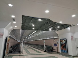 Anche giungendo nell'atrio di ingresso la situazione non è delle migliori, basti pensare al crollo del controsoffitto avvenuto lo scorso 16 maggio, che fortunatamente non ha registrato ferito ma ha messo in risalto problematiche di infiltrazioni, per cui ancora adesso arrivano lamentele. E anche l'area esterna non dà una bellissima immagine, con alcuni accampamenti abusivi che vengono rinvenuti.