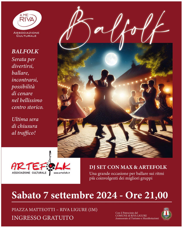 Riva Ligure si prepara a vivere una serata indimenticabile sabato 7 settembre, grazie all'evento "Balfolk", organizzato con passione dall'Associazione Culturale "A Me Riva". Questo evento, che promette di essere un vero e proprio festa si svolgerà nel cuore del pittoresco centro storico di Riva Ligure e promette di creare un’atmosfera vivace e accogliente.