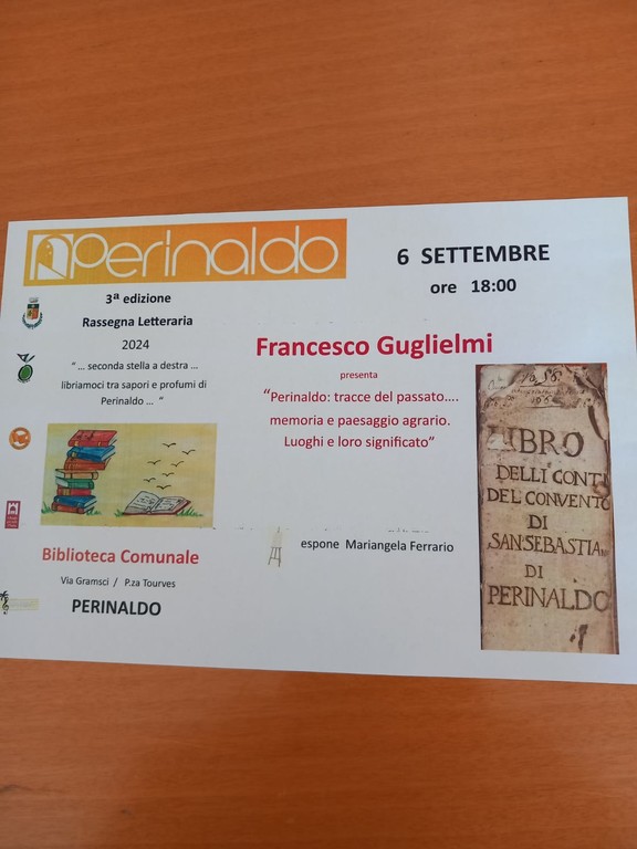 L'evento rientra nella terza edizione della rassegna letteraria 2024 "...seconda stella a destra...libriamoci tra sapori e profumi di Perinaldo...".