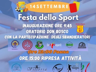 "Il 13 settembre dalle 16.30 alle 19 sulla pista di pattinaggio sul solettone sud ci sarà un'attività proposta per le famiglie: 'Orienteering insieme'. E' obbligatoria l'iscrizione" - affermano l'assessore Ierace e don Karim - "Gli ultimi due appuntamenti saranno il 14 settembre con la Festa dello Sport, una giornata all'insegna del divertimento con la scoperta di nuovi sport, e la messa dello sportivo alle 19 nel cortile dell'oratorio Don Bosco".