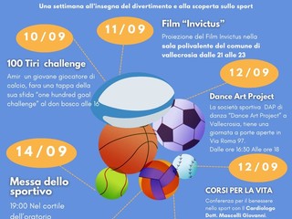 Sette appuntamenti in cinque giorni in diverse location. "Quest'anno, in collaborazione con l'oratorio Don Bosco, si è pensato di arricchire la Festa dello sport, invece di far rimanere la manifestazione solo all'interno dei salesiani, e di fare un evento per tutta la città" - fa sapere l'assessore Pino Ierace che ha organizzato l'evento insieme al consigliere comunale Marco Calipa e in collaborazione con don Karim - "Oltre alla Festa dello sport, che sarà sabato 14 settembre, dove tutte le associazioni sportive presenteranno i loro sport alla presenza del sindaco Armando Biasi e delle autorità, vi saranno anche altri progetti in giro per la città che riempiranno quasi tutta la settimana".
