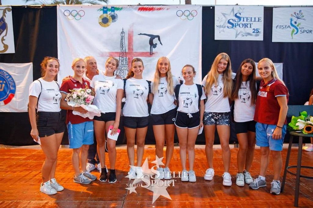Per l’artistica femminile, impegnata a luglio in allenamenti intensi, la stagione è ripartita il 31 agosto per alcune delle ginnaste junior e senior, Elena Stella, Sara Papirio, Camilla Longo, Alice Pegoraro, Alessia Saccocccia e Greta Martalò accompagnate dal Presidente Claudio Frascarelli e dal tecnico Giulia Bellone alla calorosa festa organizzata dal Comitato Regionale FGI Liguria presso il Porto Antico di Genova, in onore delle gemelle Alice ed Asia D’Amato, ginnaste liguri che abbiamo visto crescere e che ci entusiasmano con le loro gare di altissimo livello tecnico. Alice vincitrice di un oro alla trave ed un argento nel concorso a squadre alle Olimpiadi di Parigi e Asia, attualmente infortunata, protagonista di diversi podi a livello internazionale.