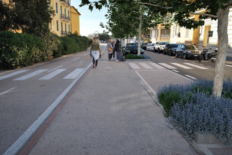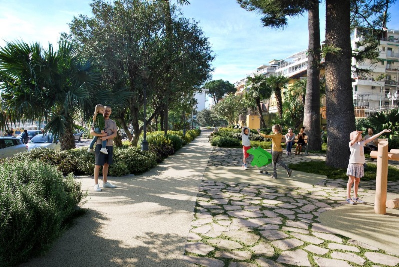 Nel dettaglio, il tratto di intervento su via Nino Bixio e corso Orazio Raimondo prevede un filtro verde rispetto alla strada carrabile con un filare alberato dotato di aiuole adeguate allo sviluppo delle alberature: ai piedi degli alberi sarà introdotta una componente arbustiva medio-bassa. Tale intervento permetterà quindi di avere 19 nuovi alberi ad alto fusto e 200 mq di nuove aiuole verdi. Saranno anche introdotte soluzioni per il drenaggio sostenibile, depavimentando l’area impermeabile dei parcheggi a favore di una pavimentazione continua drenante e utilizzando le aiuole ribassate ai piedi degli alberi come trincee drenanti, in risposta alle sfide del cambiamento climatico. Il progetto è in diretta continuità con il sistema costiero di Sanremo e con altri spazi verdi della città come i giardini Trento Trieste, il giardino Medaglie d’Oro Sanremesi, l’area verde dello Zampillo e lo slargo Ruffini.