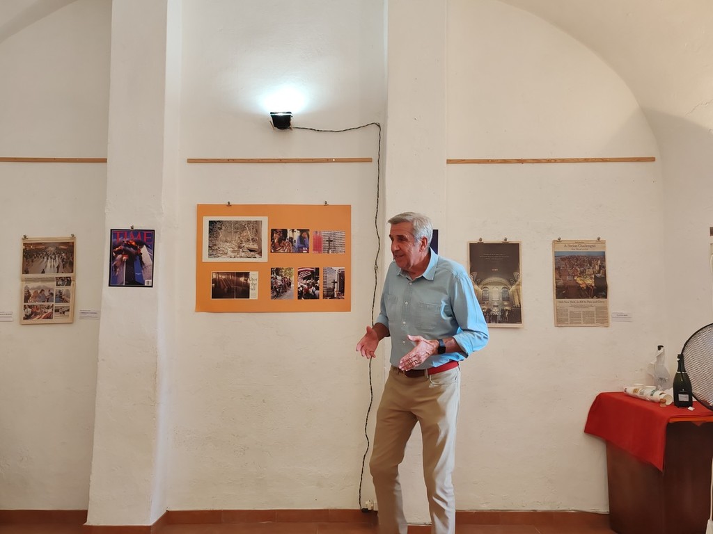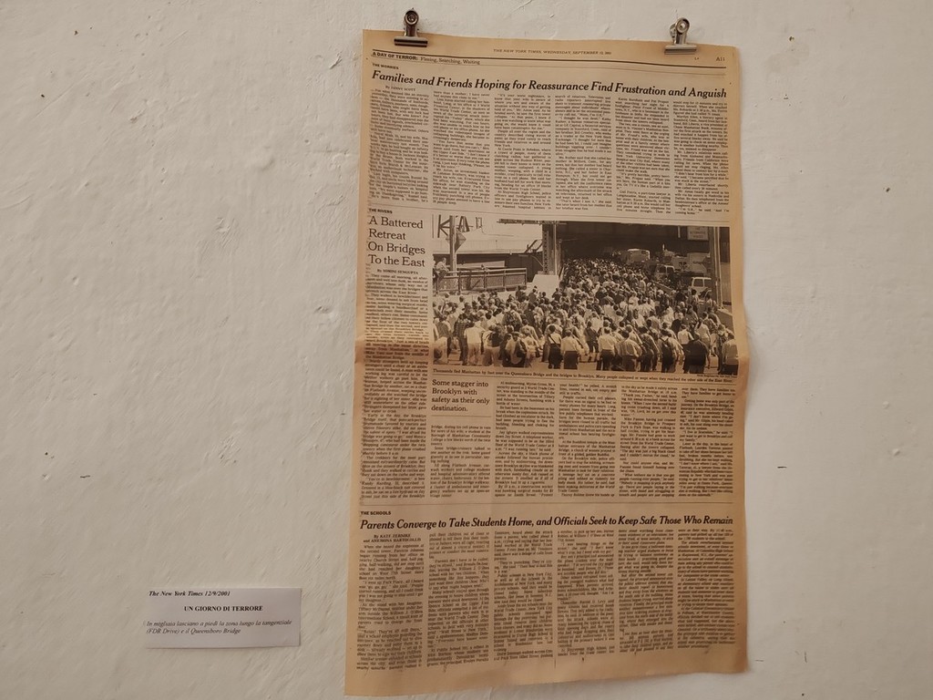Per l'occasione, Claudio Marchiori ha ripercorso il tragico avvenimento, a oltre vent'anni di distanza, attraverso riviste e giornali americani di quei giorni e, inoltre, ha raccontato alcuni episodi che ha vissuto personalmente a New York quel giorno. "Insieme a Giorgio Loreti e a Silvio Magliano abbiamo pensato di fare una mostra con i giornali di quell'epoca perché l’11 settembre è una data scolpita negli occhi e nelle coscienze di tutti. Ritrovare oggi quell’evento e quei giorni ci restituisce intatto l’orrore e lo sgomento per l'atrocità di quel gesto, come se il tempo non fosse mai trascorso" - dice Claudio Marchiori - "Ognuno di noi ricorda dov’era, cosa faceva e con chi ha cercato immediatamente di condividere il dramma. Quel giorno ero a New York e l'ufficio in cui lavoravo era a circa 500 metri dalle due torri. Salito sul tetto del palazzo per capire cosa fosse successo, dopo aver sentito un forte boato, ho visto il secondo aereo entrare nella torre. Ho subito chiamato mia madre e mi sono assicurato che mia moglie e mia figlia stessero bene. Sono rimasto colpito la calma e la freddezza con la quale tutta la gente ha vissuto quei momenti di panico. Si è raggruppata, ha mantenuto la calma e ha eseguito le istruzioni che arrivavano dopo i primi momenti di shock".