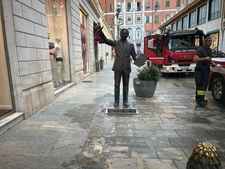 Sanremo: minaccia di dare fuoco alla statua di Mike Bongiorno con l'alcol, fermato da alcuni passanti (Foto)