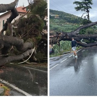 Albero caduto a Taggia, riaperta alle 21 la statale Aurelia: ultimati i lavori di sgombero (Foto)