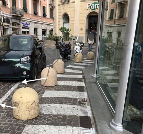 “Nella zona di fronte al supermercato Pam, vengono penalizzati i pedoni e, soprattutto, chi deve transitare con una carrozzina. Per cercare di evitare tale disagio potrebbe essere utile proseguire con le strisce bianche rastremandole in direzione di via Canessa. Altro problema riguarda il costante spostamento dei dissuasori.