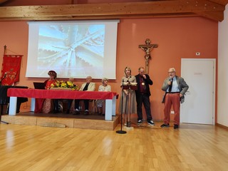 A seguire, nel salone parrocchiale di Sant’Agostino, sono intervenuti don Ferruccio Bortolotto, parroco di Sant’Agostino, lady Caroline Hanbury, l’assessore alle Manifestazioni, Turismo, Sport, Cultura, Terra Serena Calcopietro, lo storico Erino Viola per la Fondazione Giuseppe Biancheri e gli Amici dei Giardini Botanici Hanbury, il cancelliere Dario Canavese per la Cumpagnia d’i Ventemigliusi e Bruno Manzone, responsabile degli eventi per l’Associazione Amici dei Giardini Botanici Hanbury. L'evento si è concluso con un rinfresco nel chiostro di Sant’Agostino a cura dei ragazzi della Spes.