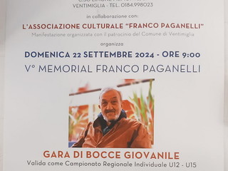 Si è consumato sui campi del bocciodromo Sandro Pertini, con l'organizzazione della Unione Bocciofila Roverino, dell'Associazione Franco Paganelli e sotto il patrocinio del Comune di Ventimiglia la quinta edizione del Memorial 'Franco Paganelli' gara di bocce riservata alle categorie giovanili, manifestazione valevole come campionato regionale 2024 di categoria under 15.