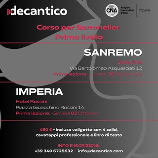 CNA e Decantico organizzano a Imperia e Sanremo il corso di 1° livello per diventare Sommelier