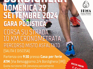 Cambia la viabilità nella città delle palme in occasione del “2° Trofeo Bordighera”, gara podistica a scopo benefico che andrà in scena il 29 settembre. Domenica prossima dalle 9.30 alle 12 verranno, infatti, chiuse al transito via Coggiola e via Vittorio Veneto per il tempo necessario al passaggio dei podisti.