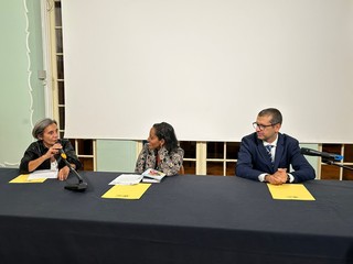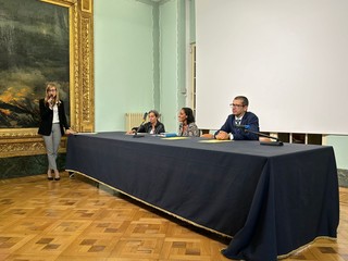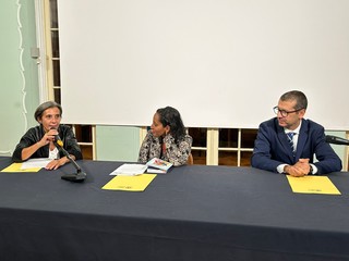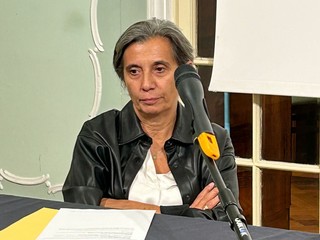 Modera l'incontro Lucia Jacona, dirigente scolastica dell'Istituto Colombo di Sanremo con Francesca Rotta Gentile