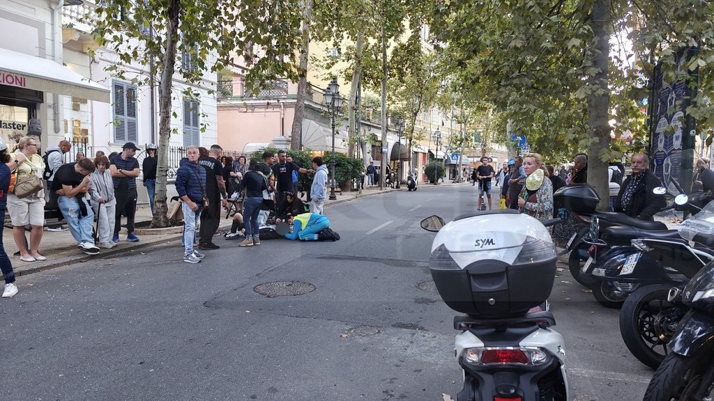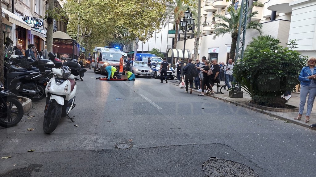 Sanremo: moto investe una donna che attraversa fuori dalle strisce in corso Garibaldi, due feriti in ospedale (Foto)