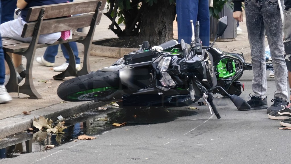 L’impatto è stato piuttosto violento ed il centauro ha fatto un volo di una ventina di metri
