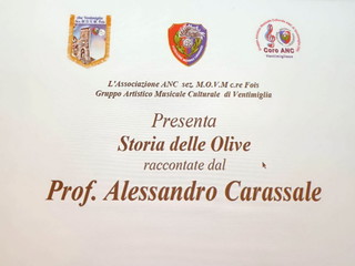 Si è svolta venerdì scorso, all’hotel Des Anglais, la conferenza sulla storia delle olive tenuta dal Prof. Alessandro Carassale, organizzata dal gruppo Artistico Musicale Culturale dell'associazione nazionale Carabinieri (Sez. Fois) di Ventimiglia.