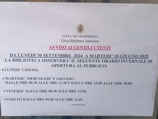 “Anche la palestra di via Chiappori necessita di interventi importanti, soprattutto per quanto riguarda la pavimentazione. A fare pendant con l’abbandono delle strutture scolastiche cittadine è, infine, la riorganizzazione della biblioteca comunale di piazza Bassi: dal 30 settembre osserverà infatti un nuovo orario, con chiusura il lunedì e riduzione degli orari di apertura nei restanti giorni. Diventerà, quindi, una sorta di biblioteca part-time, in totale controtendenza rispetto a quanto accade in altri comuni della provincia (quali, ad esempi, Sanremo e Imperia), limitando così un servizio pubblico apprezzato dagli utenti”.