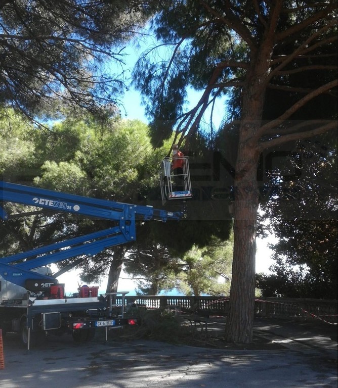 Sanremo: il maltempo fa cadere parte di un pino ai 'Regina Elena', l'Assessore "Nessuno vuole abbatterli, abbiamo dovuto metterlo in sicurezza" (Foto)