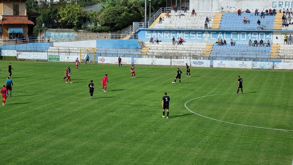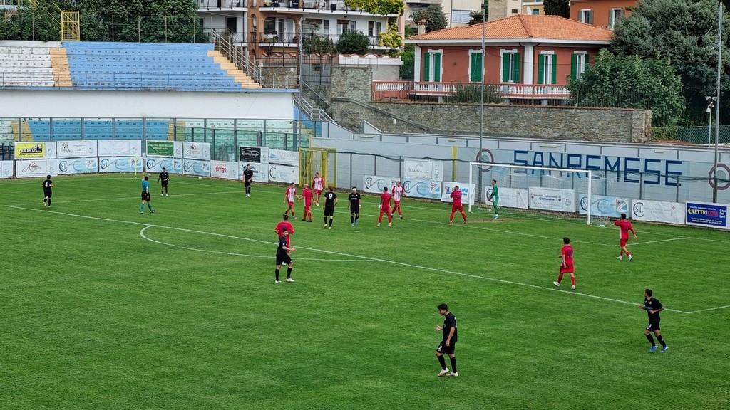 Finisce il primo tempo dopo un minuto di recupero. Col passare dei minuti, la Sanremese è sembrata non patire l'inferiorità numerica. Ma ci sono ancora 45 minuti