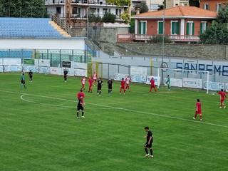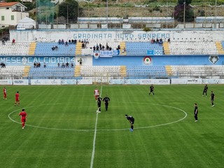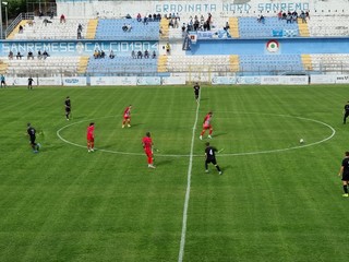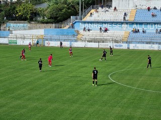 Finisce il primo tempo dopo un minuto di recupero. Col passare dei minuti, la Sanremese è sembrata non patire l'inferiorità numerica. Ma ci sono ancora 45 minuti
