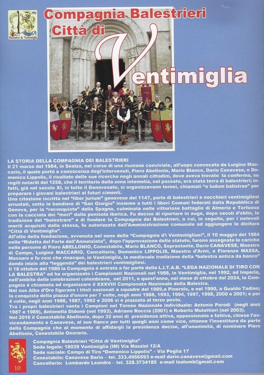 1984-2024. Nel quarantennale della storia della fondazione della Compagnia Balestrieri di Ventimiglia, la città di confine ospiterà, nel fine settimana, il 38° campionato italiano di tiro con la balestra antica.
