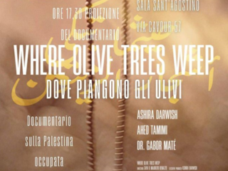 Per l'occasione sarà proiettato il docufilm “Dove piangono gli ulivi”: un documentario che si sposta nei territori palestinesi occupati, raccoglie le voci di israeliani e palestinesi impegnati per la giustizia e la libertà condivise, riporta le testimonianze di donne e uomini palestinesi nelle carceri israeliane. Dopo la proiezione sarà aperto il dibattito. Interverranno rappresentanti delle associazioni organizzatrici, tra cui Kalid Rawash, medico palestinese-italiano, il presidente provinciale dell’ARCI e l’imperiese Susanna Bernoldi dell’AIFO, attivista sociale e umanitaria internazionale che porterà le testimonianze dirette dei suoi numerosi viaggi in Palestina. L’incontro sarà anche un’ulteriore occasione per rilanciare la campagna di boicottaggio BDS (Boicottaggio Disinvestimento Sanzioni) contro l’occupazione e l’apartheid israeliana, per la parità dei diritti per tutte e tutti, contro ogni forma di discriminazione.