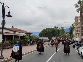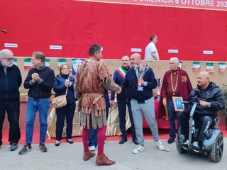 Costumi d'epoca, balestre antiche, tamburini, musici e sbandieratori. Un corteo storico lungo le vie della città caratterizza la seconda giornata del 38° campionato italiano di tiro con la balestra antica a Ventimiglia. Le dodici compagnie, oggi, si sono ritrovate nel piazzale dell'ex Gil per sfidarsi nuovamente. Alla fine è stata la compagnia San Paolino di Lucca a vincere il torneo a squadre che si è aggiudicata così 'Trofeo Città di Ventimiglia' mentre Mauro Elisei di Norcia ha vinto il torneo individuale conquistando così il 'Trofeo Regione Liguria'.