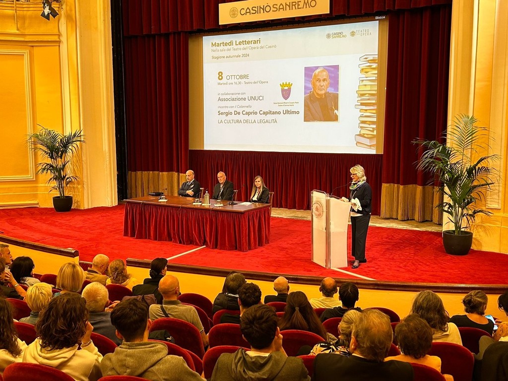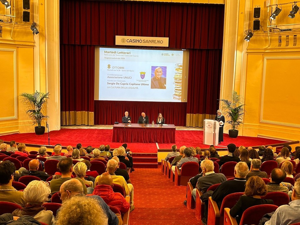 Questo pomeriggio il Teatro dell’Opera del Casinò di Sanremo ha ospitato un evento di grande rilevanza dedicato alla cultura della legalità, con protagonista il colonnello Sergio De Caprio, meglio conosciuto come "Capitano Ultimo". L'incontro, organizzato in collaborazione con l’associazione Unuci (Associazione Nazionale Ufficiali in Congedo) nell’ambito del ciclo “La cultura della legalità” e inserito nei Martedì Letterari curati da Marzia Taruffi, ha visto la partecipazione di un pubblico numeroso e attento.