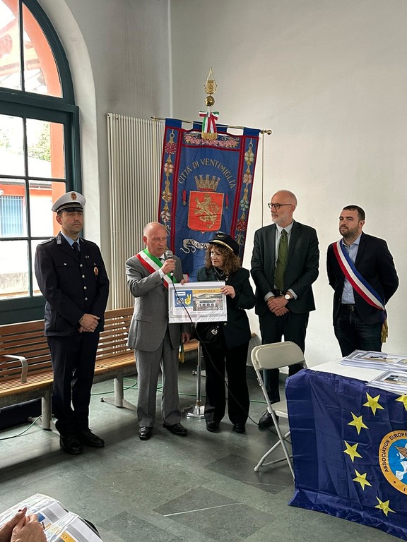 L'assessore di Ventimiglia Domenico Calimera ha presenziato al premio ferroviario europeo EUROFERR, presso Breil Sur Roya salone della stazione. Tema dell'incontro la premiazione dei Sindaci di tutte le stazioni francesi e italiane della linea ferroviaria delle Meraviglie, da Cuneo a Ventimiglia.