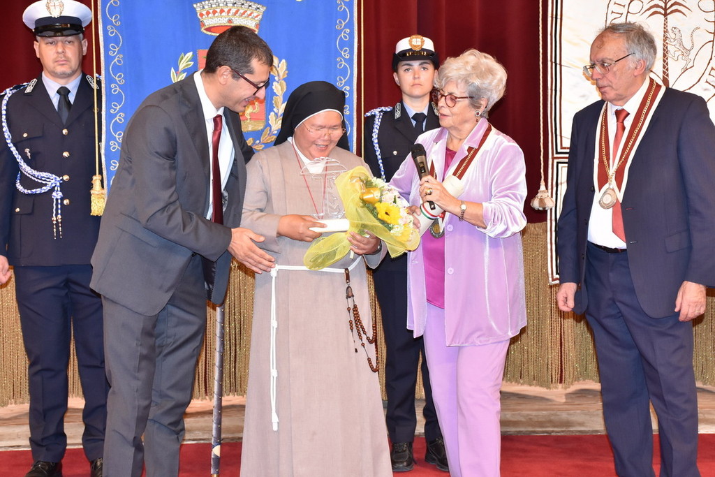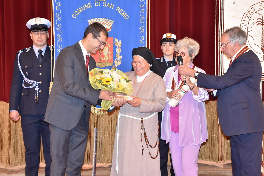 Il premio San Romolo per le opere sociali a Suor Norma Abiera: nata il 22 luglio 1964 a Toledo City (Filippine), frequenta il biennio universitario conseguendo il baccalaureato. Avendo sin dall'infanzia sentito il desiderio di aiutare le persone bisognose, nel 1986 entra nell'Ordine Suore Francescane dei Sacri Cuori e viene inviata in Italia a Roma. Nel 1993 consegue il titolo di Infermiera professionale e nel 2003 è inviata a Sanremo presso la Piccola Opera del Cuore Immacolato di Maria fondata da Don Pietro. Nel 2011 ottiene la cittadinanza italiana. Dopo un periodo passato a Capri con funzione di infermiera, nel 2015 rientra a Sanremo, ove tuttora risiede. Nell'Istituto, che ospita signore anziane accudite e curate con dedizione, svolge mansioni di Superiora delle Suore presenti e di Direttrice coordinando e animando l'attività delle altre 10 suore (1 infermiera e 9 OSS) e dei 7 dipendenti. Affronta con serena decisione i non lievi problemi burocratici ed economici, non disdegnando alcun servizio a favore della comunità, anche il più umile, senza sottrarre tempo alla preghiera.