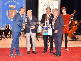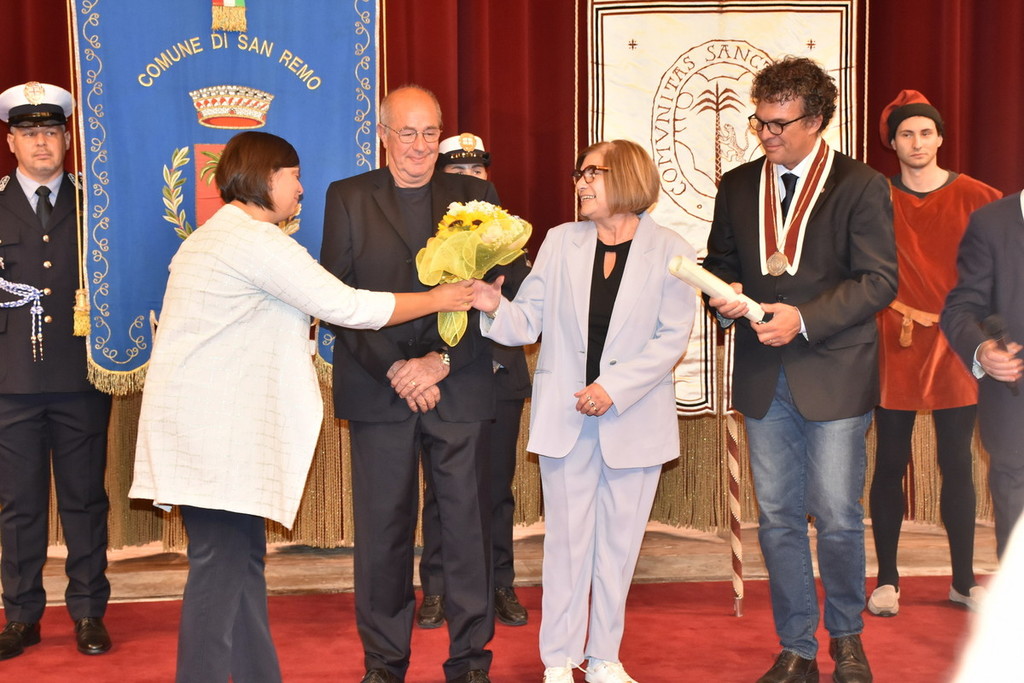 La targa ‘Amico di Sanremo’ a Giancarlo De Lorenzo, direttore artistico dell’Orchestra Sinfonica: nato nel 1959, ha compiuto i suoi studi presso il Conservatorio di Musica di Brescia diplomandosi in organo e composizione organistica con il maestro Franco Castelli e composizione e direzione d'orchestra con il maestro Giuseppe Cataldo. Direttore Stabile dal 1992 dell'Orchestra Vox Aureae di Brescia, dal 2003 al 2011 è Direttore Artistico e Principale dell'Orchestra del Teatro Olimpico di Vicenza. Dal 2012 è Direttore principale ospite dell'Orchestra Filarmonica Italiana e dell'Orchestra Sinfonica di Grosseto. Ha diretto in più occasioni orchestre italiane e straniere: Orchestra di Padova e del Veneto, I Pomeriggi Musicali di Milano, Orchestra Europa Philarmonie di Magdeburgo, Orchestra Sinfonica di Wroclaw (Polonia), Orchestra dell'Ermitage di San Pietroburgo, Orchestra Sinfonica di Bilbao, Orchestra del Carlo Felice di Genova, Orchestra Filarmonica da Camera di Monaco di Baviera, London Mozart Players, oltre a numerose produzioni operistiche. Dal 1° gennaio 2015 è Direttore Artistico e Musicale dell'Orchestra Sinfonica di Sanremo.