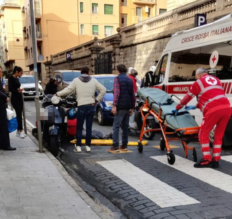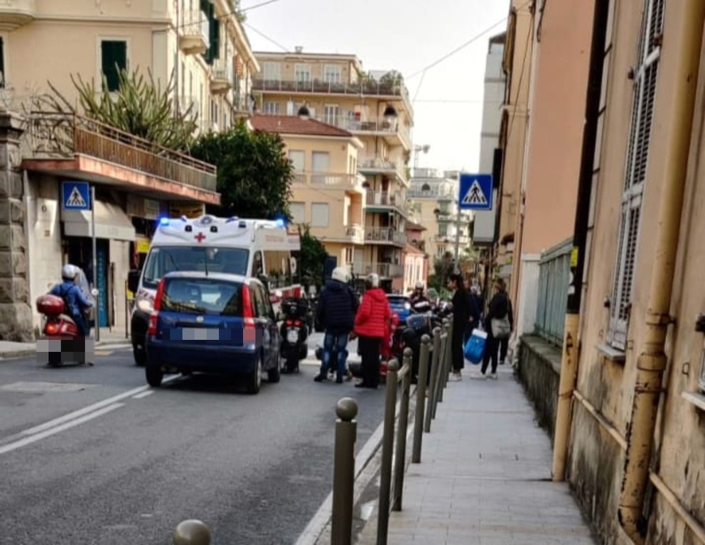 Sanremo, uomo in scooter inchioda e viene tamponato in via Volta: trasportato al pronto soccorso in codice giallo (Foto)