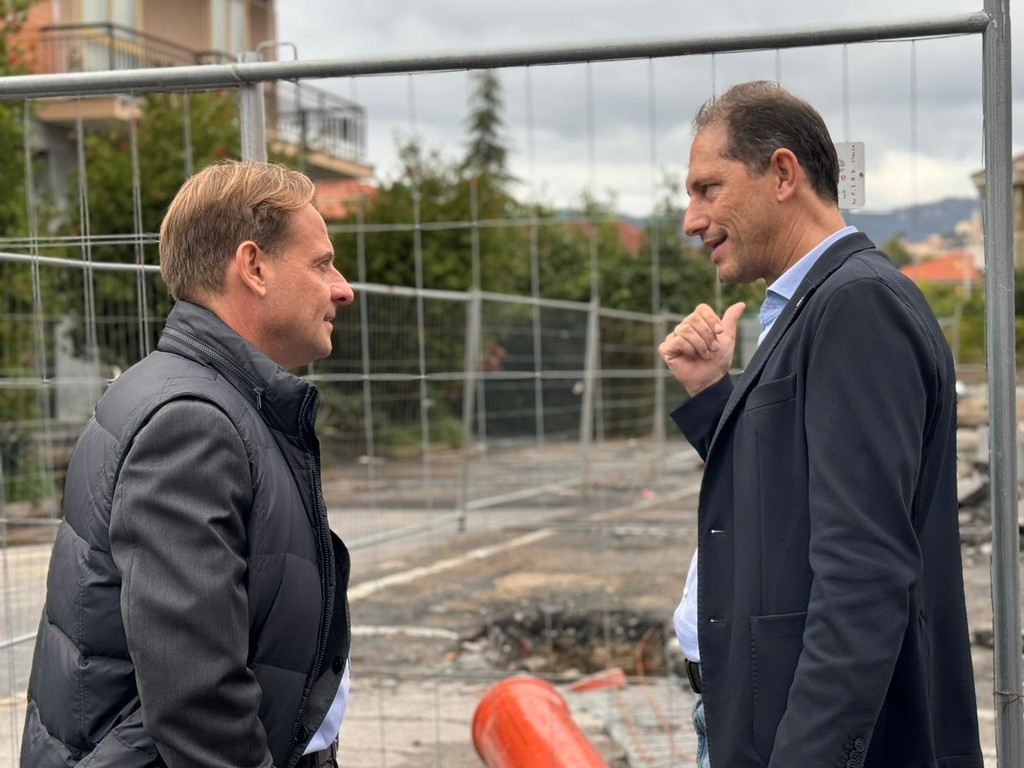 L’assessore regionale all’Urbanistica Marco Scajola ha effettuato questa mattina, insieme al sindaco Cristiano Za Garibaldi, un sopralluogo sul cantiere della Ciclovia Tirrenica nel tratto di via Saponiera, piazza Costituzione.
