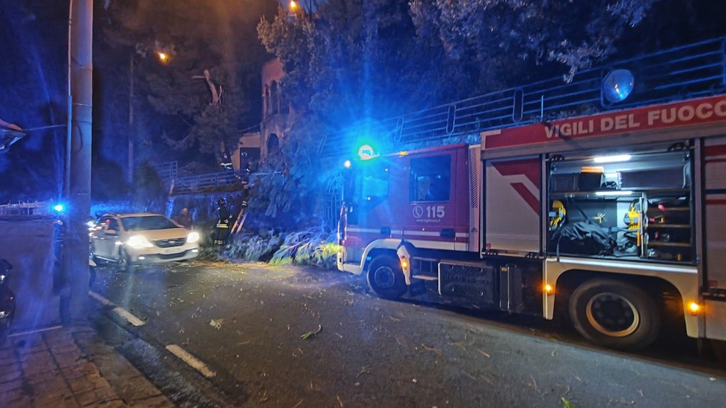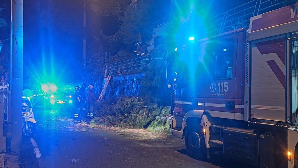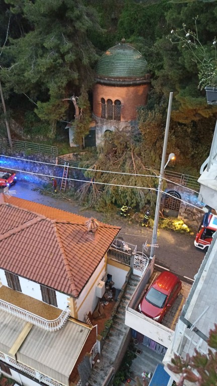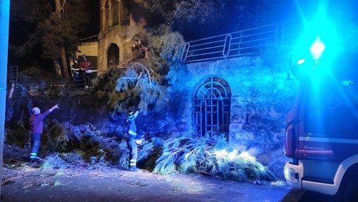 Sanremo: albero cade in via Dante Alighieri, intervento di Polizia e VVf (Foto)